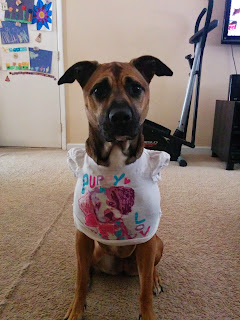 Everytime I help Juli get dressed the dog will sit in front of me till I put a shirt on her!